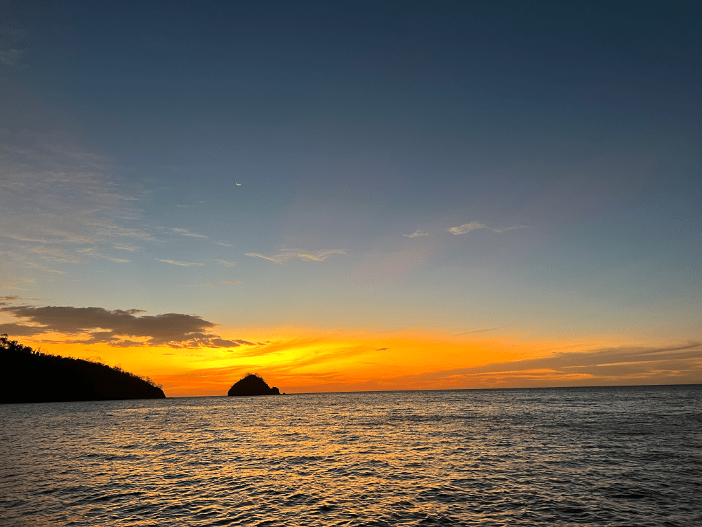 The first day was spent provisioning and preparing for life at anchor. This is no easy task, shopping in foreign markets and trying to find all the supplies that we will need. We will be doing the “bay-hopping” thing in Costa Rica and Panama for 2 – 3 months. We have a decent sized refrigerator and freezer for a boat however, 3 months is a long time. The priority was making enough room for the essentials which include wine and chocolate. The customs officials also confiscated Pippa’s food so we needed to find some dog food that the “pickiest dog in the world” would eat. Matt had topped up the fuel and after a quick boat wash-down we were ready to head out.