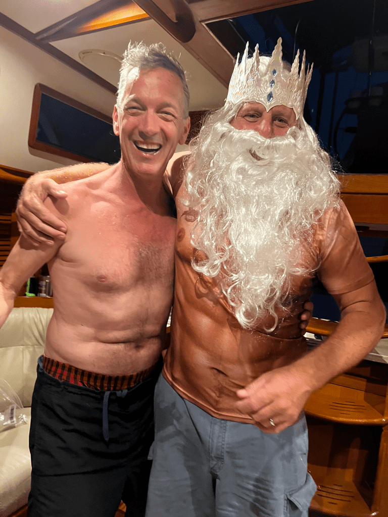 This passage has brought us from the southern hemisphere where we have been for over a year back to the northern hemisphere. We crossed the equator on Tuesday March 5th at 1945h when our position changed from south to north. Our crew member was initiated by King Neptune in an elaborate ceremony giving him his shellback status.