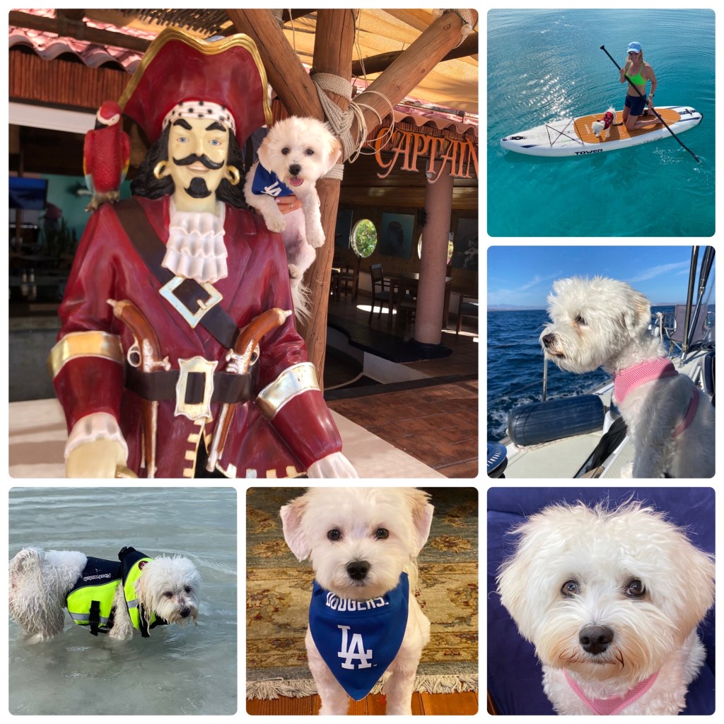 Pippa has spent nearly half of her life aboard Matilda. She loves paddle board rides with Fiona, running free on deserted beaches, consorting with pirates, and prancing around marinas where everybody wants to pet her. She doesn’t love being at sea in less than perfect conditions. She is a lot like Fiona in that regard.